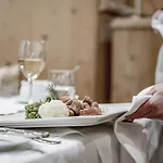 Os hóspedes são convidados para o restaurante "Kirchners Stuebli" para apreciar os pratos deliciosos.
